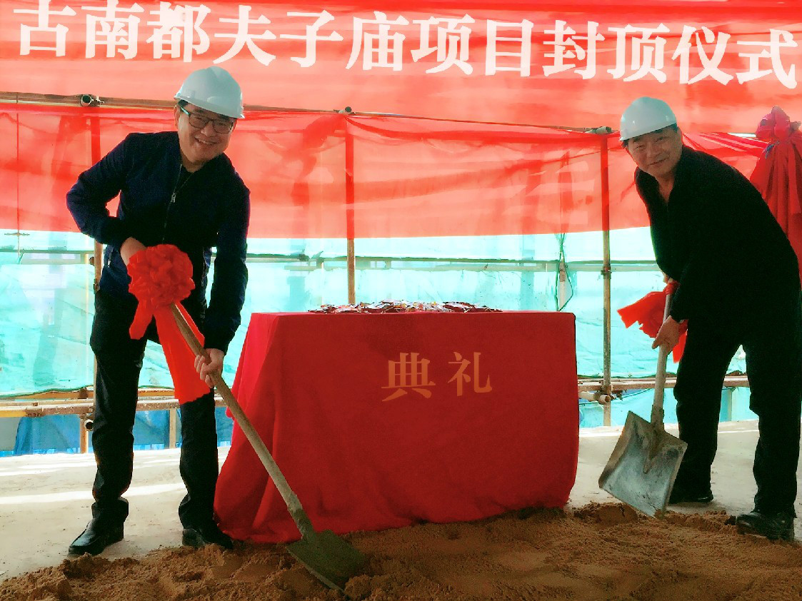 为庆祝古南都饭店停车库及多功能厅工程取得喜人进度,2018年5月26日,严敦志董事长携集团领导层及古南都饭店中层以上干部,齐聚工地现场,举行了隆重而热烈的上梁封顶仪式。 集团总经理陈康首…