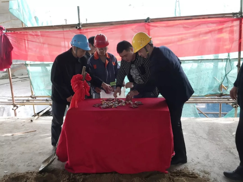 2018年4月15日下午三时,在基建部的努力下,集团夫子庙项目工程建设取得阶段性成果。严敦志董事长、陈康总经理、钱伊蕾副总经理赴工地现场参加了简短而意义重大的封顶仪式。