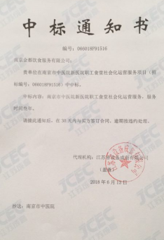 近期,古南都集团所属企业---南京云嘉饮食文化发展有限公司代表集团参加了南京市中医院新医院职工食堂社会化运营服务招标项目的对外公开招标,并一举成功中标。