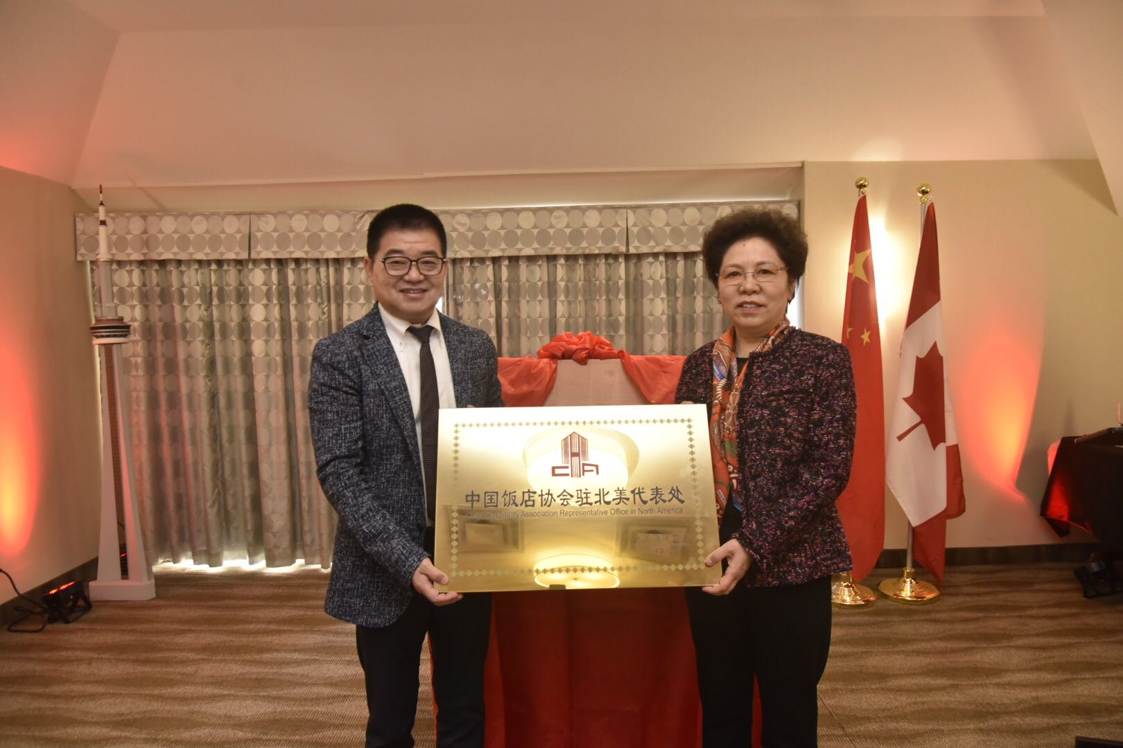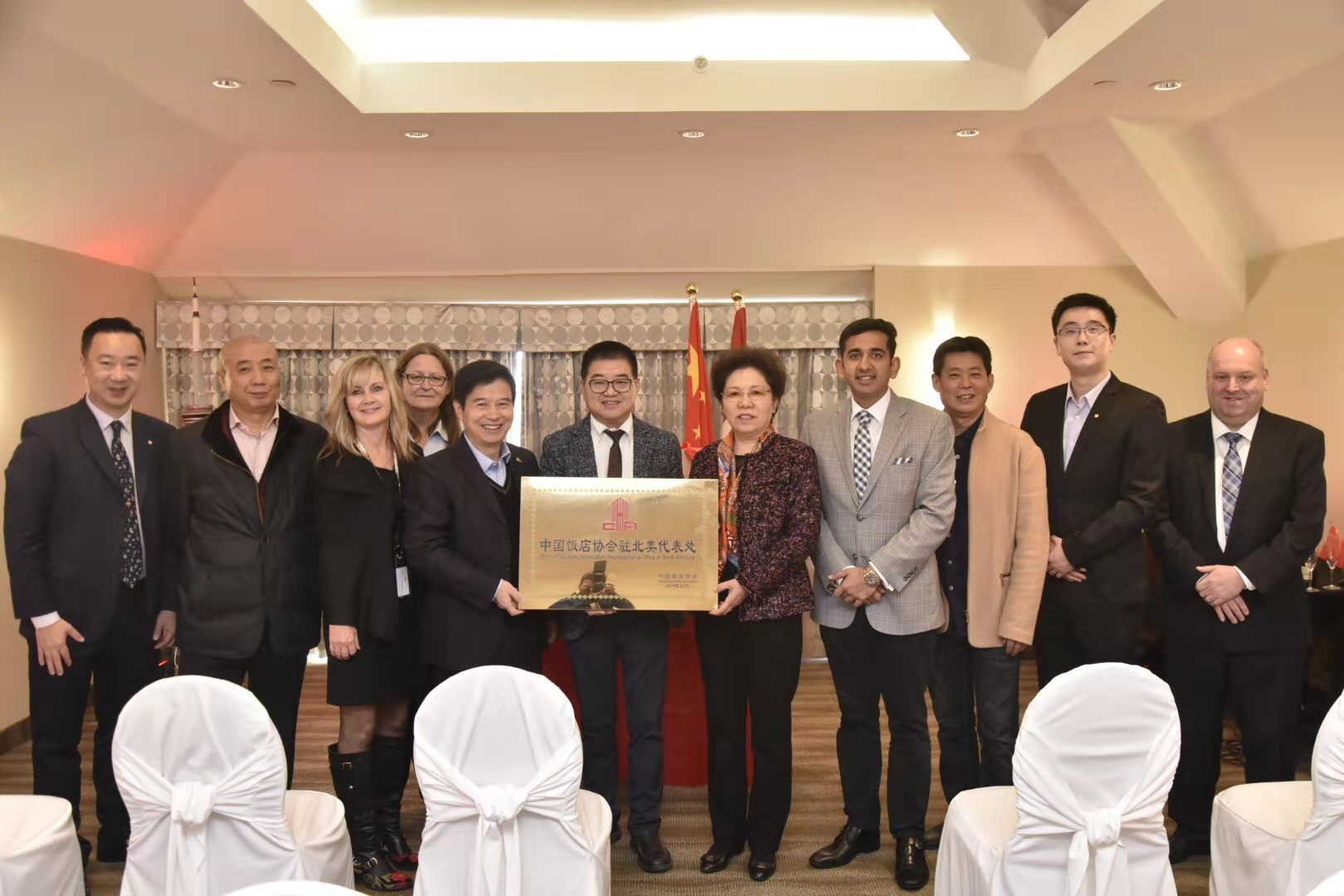 活动当天,韩明会长为中国饭店协会驻北美代表处,举行隆重而喜庆的揭牌仪式。揭牌仪式圆满成功。期间,韩明会长和考察团成员等兴致勃勃地与代表处牌匾合影留念,韩会长说:此次前来考察访问多伦多,设立中国饭店协会北美代表处,就是要加强中加的餐饮业的交流,探索国内的老字号餐饮企业落户多伦多的途径。