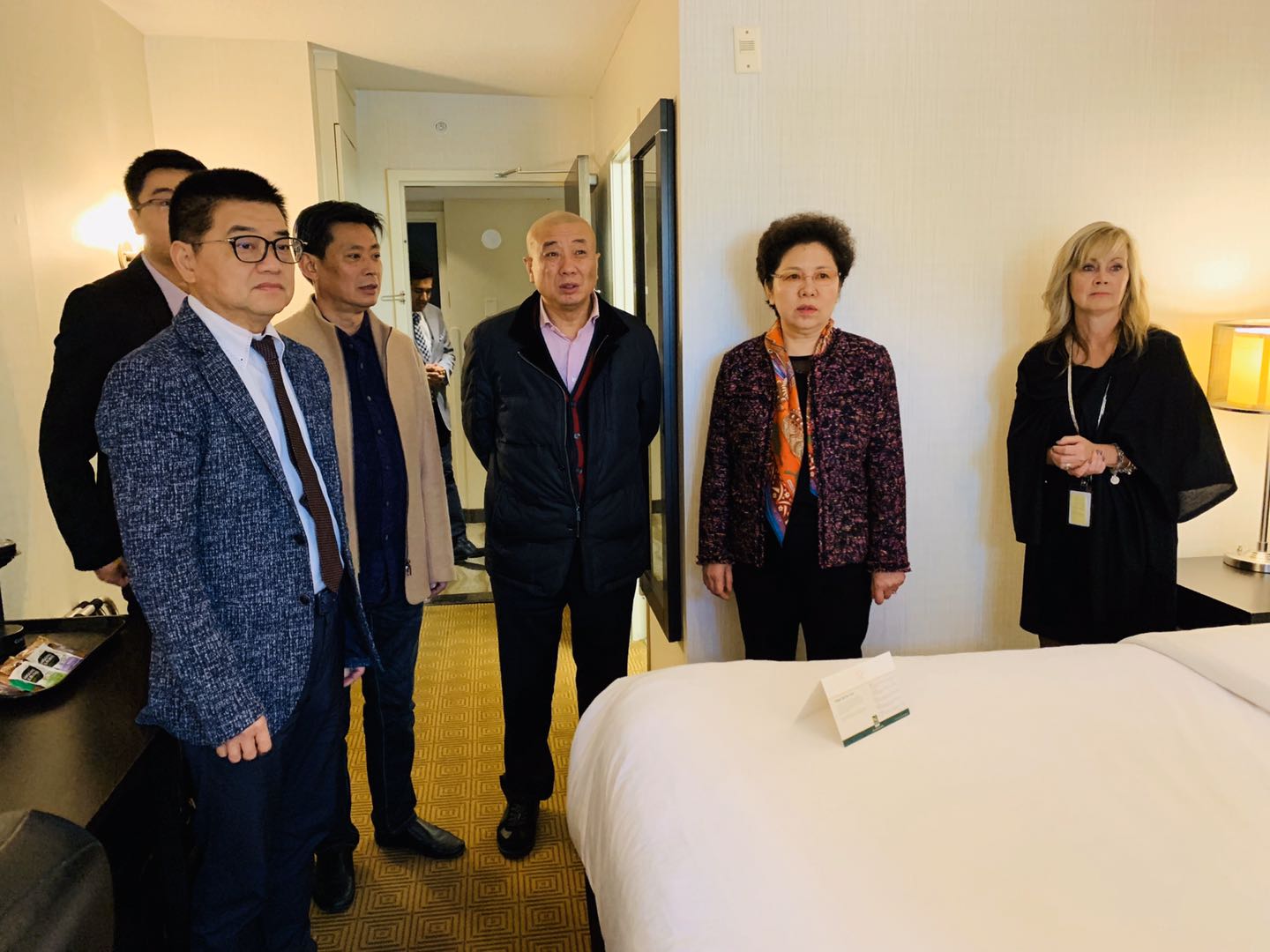 当地时间2019年10月13日上午,古南都集团董事长严敦志、集团总经理陈康、集团副总经理张志军及酒店管理层部分成员,在加拿大多伦多品质酒店Quality Hotel Burlington,热烈欢迎中国饭店协会韩明会长率代表团到店进行考察交流。考察期间,韩明会长仔细询问了酒店经营管理情况后,充分肯定了集团响应国家一带一路倡议,走出国门求发展的勇气,并对酒店的经营情况、管理方法、环境卫生、特别是绿色酒店的做法给予了赞许。