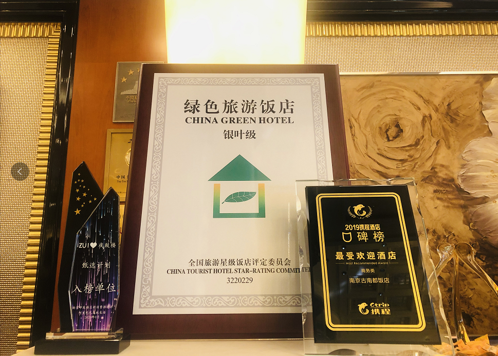 为响应国家旅游局、全国旅游饭店星级评定委员会提出的酒店应积极创建绿色旅游饭店的号召,古南都饭店长期不懈贯彻绿色环保理念,近日被全国旅游星级饭店评定委员会授予“银树叶级绿色旅游饭店”的荣誉称号。